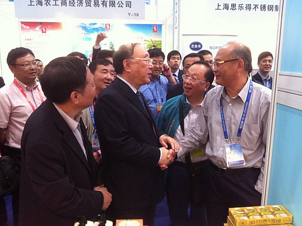 On May 15, 2014, on the opening day of the 17th China (Chongqing) International Investment and Global Sourcing Fair, the former Chongqing Mayor Huang Qifan and the then General Manager of Shanghai Soap Co., Ltd. Zhong Yanguo shook hands and exchanged cordially.
