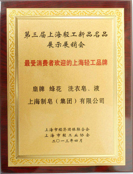 2012年9月,蜂花檀香皂、上海香皂、扇牌洗衣皂及洗衣液获评上海名优产品称号。