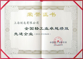 2014年3月,上海制皂有限公司被评2012-2013年度为全国轻工业绩效先进企业。