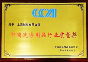 2018年11月,上海制皂有限公司荣获中国洗涤用品行业质量奖。