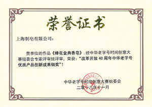 2018年11月,蜂花金典香皂获评中华老字号时尚创意大赛改革开放40周年优质产品创新成果铜奖。