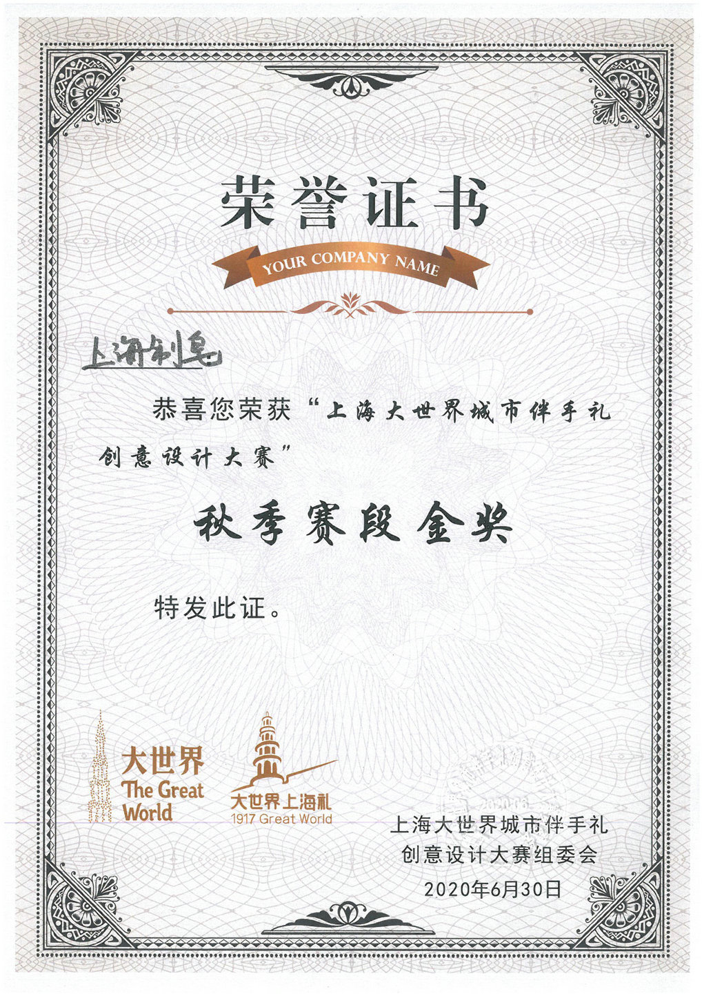 2020年6月,上海制皂厂有限公司获评上海大世界城市伴手礼创意设计大赛秋季赛段金奖。