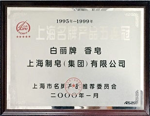 2000年1月,白丽牌香皂荣获1995~1999上海名牌产品五连冠。